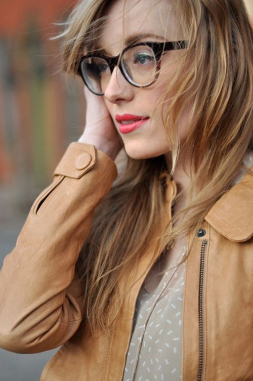 Οι γυναίκες που έχουν επιλέξει πολύχρωμους σκελετούς γυαλιών οράσεως θα πρέπει να γνωρίζουν πως η απλότητα είναι αυτό που θα αναδείξει το στιλ τους. Ένα καφέ μολύβι στις γωνίες του άνω και κάτω βλεφάρου είναι αρκετό για να τονίσει το βλέμμα σας. Τέλος, εάν έχετε επιλέξει γυαλιά οράσεως με σκελετό σε ορθογώνια, γεωμετρικά σχέδια , προτιμήστε μια απλή χρυσή σκιά για το άνω βλέφαρο και ένα πολύ απαλό ρουζ.